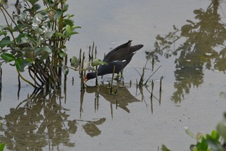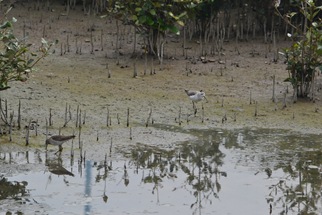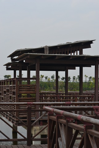 走在社區認養管理的崎峰濕地,甘爸指著賞鳥亭上的茅草,「你看,莫拉克那時候的水就高到把屋頂上面的茅草給弄得『ㄇㄧㄇㄧㄇㄠˋㄇㄠˋ』。」由社區接手管理的濕地公園,一走進步道就可以聽見成群的高翹鴴的叫聲,水面上則可見紅冠水雞、蒼鷺、洋燕、水筆仔等濕地樣貌,「這裡我們都是由志工來負責清潔維護,我們會排班來負責這些工作。」
