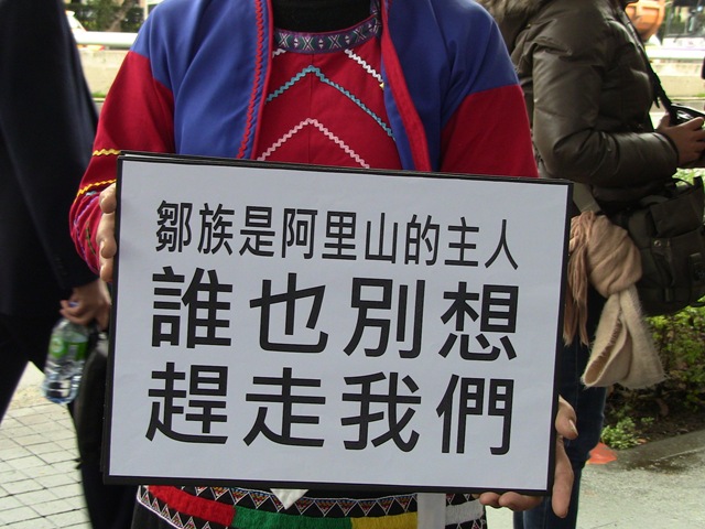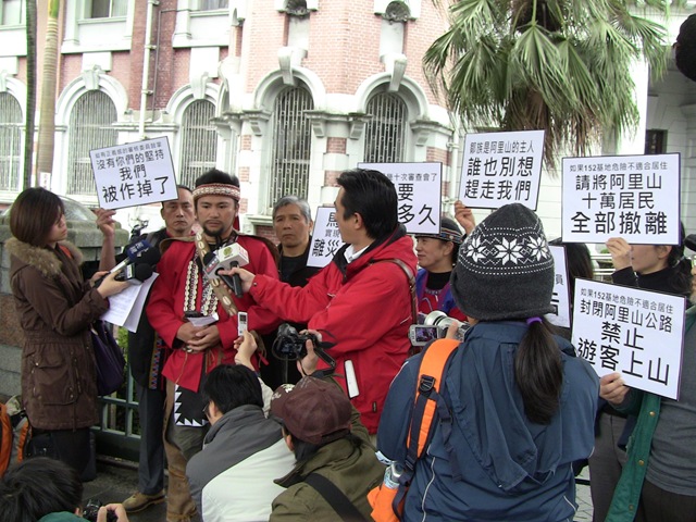 你們砍盡整個阿里山的原始檜木林,縱容滿山遍野的濫墾濫伐,讓我們的部落家園被土石流沖毀,你們聘請的專家學者在哪裡?連我們的立錐之地也要連根拔除?