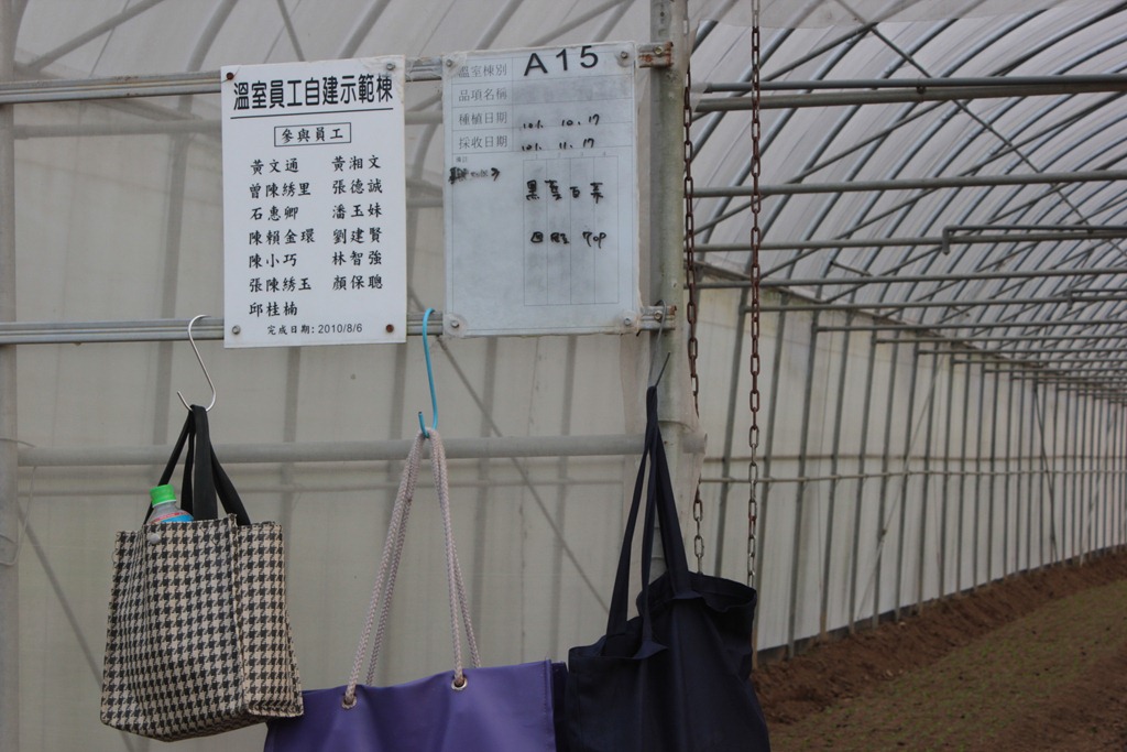 相較之下,小仙當時算是幸運的,「我當初是第二批的;那些溫室全部是我們蓋的,我還敢爬上去咧」她回憶起當初為了把握住這個不容易的工作機會,連自己都吃驚的勇敢。那時,是外面的包商進來教永齡工人做,「說有機會可以自己修建。但是他們好像沒有機會自己修建了,因為老資格學過的工作很多都走了」。