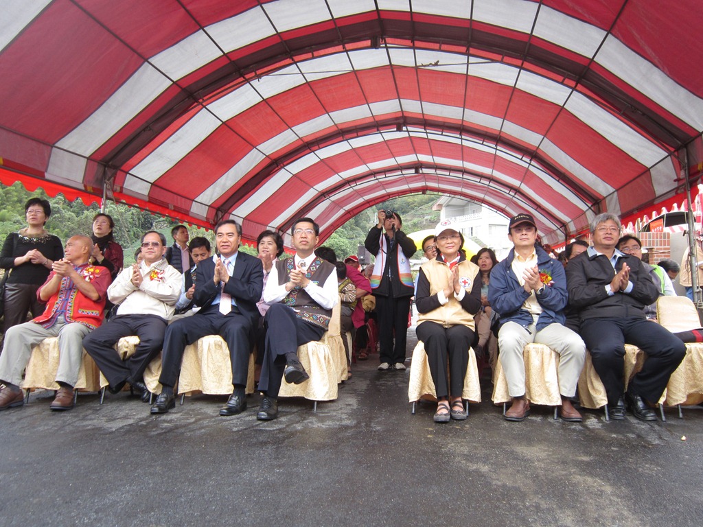 落成啟用典禮由阿里山國中小師生的學期成果展暖場,演唱樂野之歌、弦樂器合奏與勁歌熱舞等等。除了嘉義縣政府、阿里山鄉公所、行政院重建會、行政院原民會等各級官員,紅十字會總會王清峰會長也來致詞。象徵性地完成將房屋所有權狀由紅會贈與縣府轉交受災戶代表、行政院入厝慰問金、住戶鑰匙等儀式之後,請各長官為永久屋舍區入口印象揭牌;儀式結束後,受安置戶身份的鄒族鄉親帶著通知單與證件排隊,逐一辦理報到入住登記。