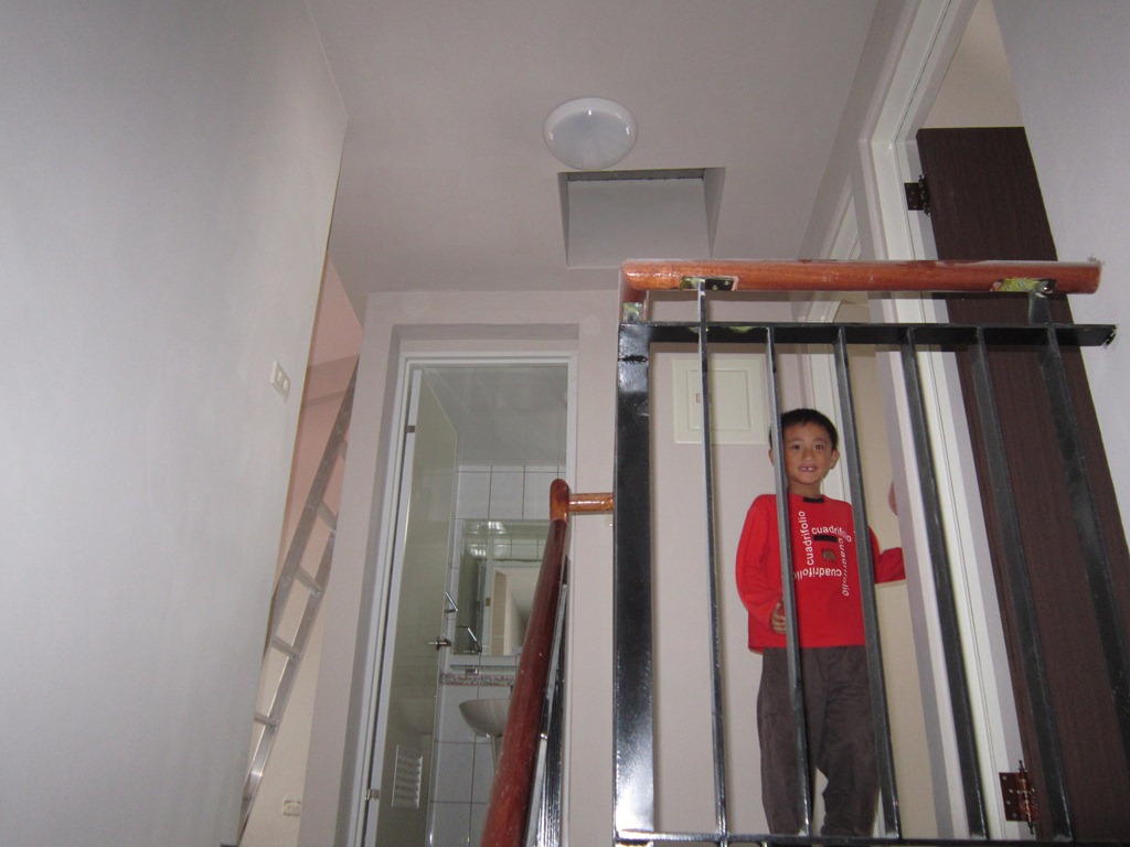 住宅的外觀小巧美麗,二樓有一主臥三小臥,小臥空間約3-4坪;一樓客廳有一個凹進牆壁的小收納間,狀似火爐;可惜沒有作煙囪,「聖誕老公公下不來」,婦女笑著說。