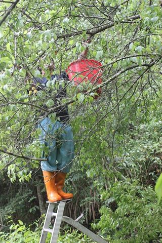 詢問提供貨物的Ali,是否違規偷偷竿打取果,才導致受過傷的果子到達客戶手中已經爛掉? Ali表示,她沒有這樣作。但是,應該是因為收貨的前一天有請比較多的人手,有的人就依照過去拿熟梅的慣性,把掉在地上的梅子也撿起來;她也發現有的工人用搖的,把果子從樹上搖下來,再從地上撿。
