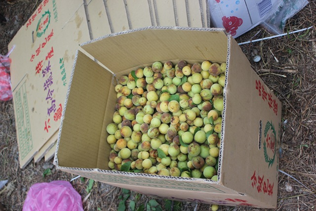 第二天午後接到消息,黃熟梅到達收貨地,開箱發現悶過熟、爛掉的果子過多,必須挑過,否則不論是用來煮梅醬,還是作梅汁,都難以使用。