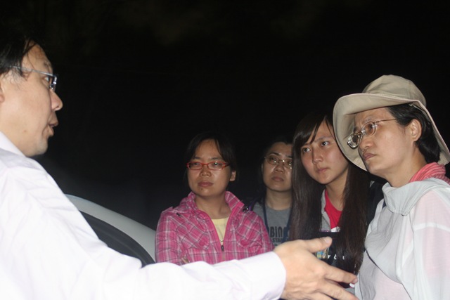 曾經擔任荒野保護協會志工的田崇一口中的「體驗生態」,便是學員晚上的「夜間生態導覽行程」。愛好自然的田崇一生態知識豐富,對於動植物的學名與習性知之甚詳,搭配新開部落獵人王國用的在地知識,兩人輪流補充說明關於山區植物、蛙類、昆蟲與飛鼠等夜間生物的習性,學員們都聽得津津有味。