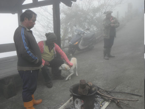 濃霧中烤火取暖兼燒水,打水洗澡真像小時候在花蓮鄉下的生活。