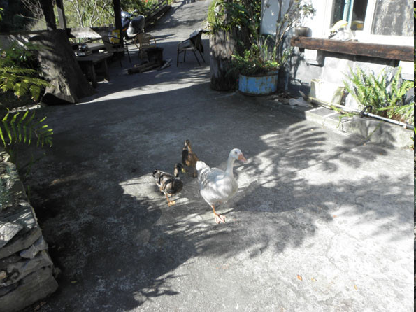 鴨鴨有點不習慣山上的氣候,太陽一出來,就在院子裡踢正步。