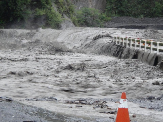 昨夜,拉庫斯溪水暴漲,復興橋拉起封鎖線,兩側都有道路保全人員作監測,隨時把橋的存歿狀態報給公路局;道路保全的任務是顧橋,水是否會衝到村莊這件事,因為是野溪整治問題,由水保局負責,但是水保局沒有人員在這裡,所以,居民說:「水保局委託里長作防災專員」。