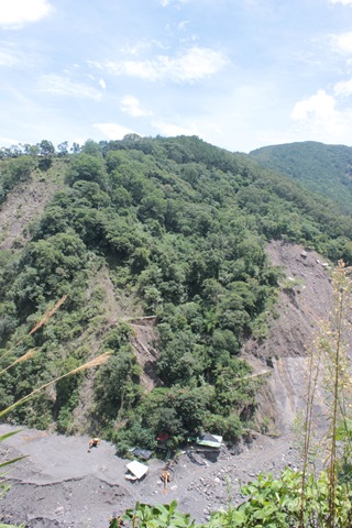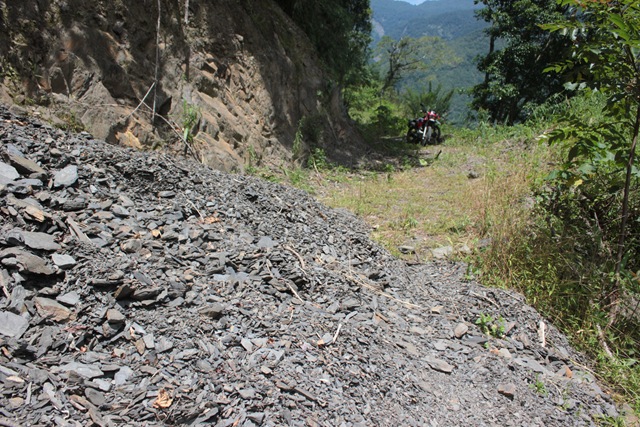 過玉穗溪谷往上翻過這座山,才能往玉穗社舊址,才能到復興。照面中的路跡,就是前年摔過四輛車的玉穗農路;據說照片看不到的背面,路基全數崩坍,只能學山羊走路小心攀爬。