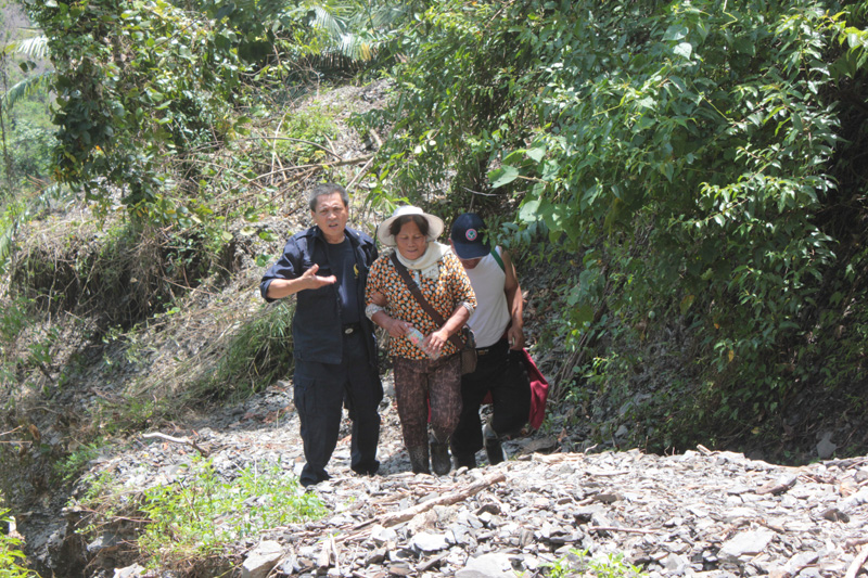 這位婦女是復興里一鄰鄰長江阿招,今年已經60歲;緊急送醫的原因,是心律不整加上高血壓。一週以來,她的血壓飆高到170-180之譜,雖經過與位於桃源里的衛生所電話聯繫,有透過電話看診投藥,但不見改善;加上擔心心臟藥物已經快要用完,所以今天早上主動向里長請求步行出山就醫。