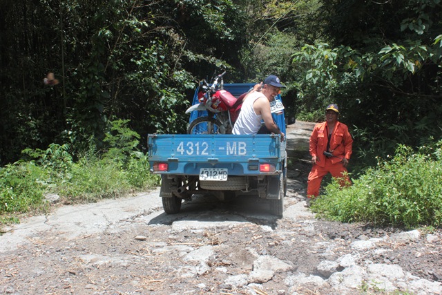 摩托車只能前進到這邊來等待需送醫的婦人走出來