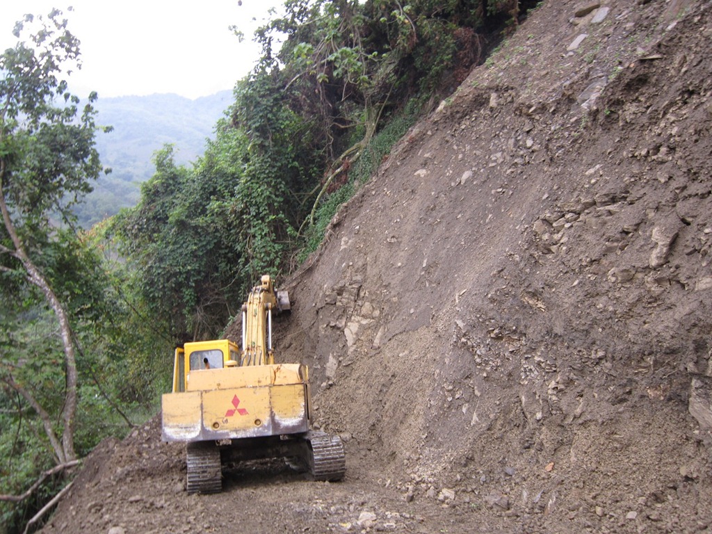 開始工作了,Andrew坐在駕駛座上,熟練地操縱機械手臂掃平障礙土石,從邊坡處往溪谷空拋棄置。「要注意土動,怪手行進中引發的振動力量很強,容易引發土石下滑」;今天有我跟訪,如果山壁有任何整體滑落的跡象,用聲音、手勢必須立刻提醒他,意外發生時這是千鈞一髮的逃難機會。通常這工作是地主或里長要幫忙注意的,但是往往他們事忙不在現場,怪手司機只能自己小心,自求多福。荒山野嶺,真出了事,往往沒有人可以呼救。
