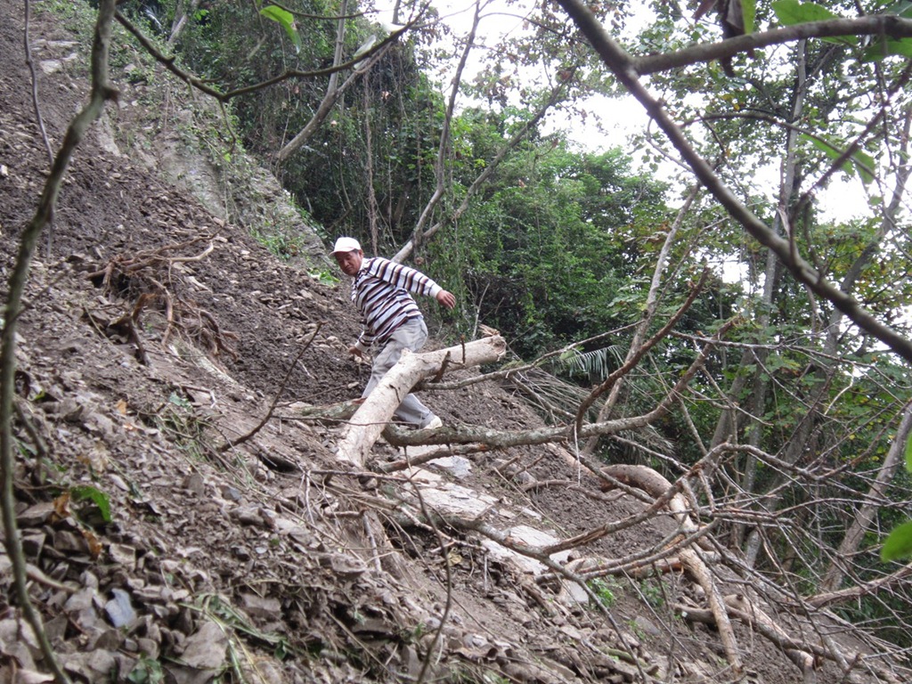 「壓力很大,搶修農路是最危險的工作」,Andrew說。三年多前,莫拉克風災剛過的那一年年底,就是為了這一條一號農路的開路工作,一個荖濃工人,61年次,開小山貓從山腰墜落300公尺深的溪谷,當場死亡。這個事故,地主Tama Sumai也知道,今天他剛好也在園中砍草,特意過來關照一下Andrew,他算長輩,Andrew的媽媽與Tama Sumai同家族,所以Andrew也算是自己的孩子一般,他特意擱下手上的工作過來提醒Andrew注意安全,同時也叮嚀Andrew幫忙保留部份迴車道的空間。「Ali你幫忙注意安全」, Tama Sumai交代我。