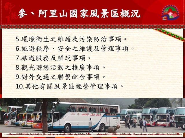 4.阿里山的原住民,因為遊客及大陸客增加,而獲得利益或是增加部落生態旅遊的非常少,這是事實了,因為遊覽車遊客還是以傭金及回扣來決定行程,部分遊覽車雖說有整天承租,但業者還是會找藉口讓司機再次下山去載運遊客賺更多錢,這都是事實。