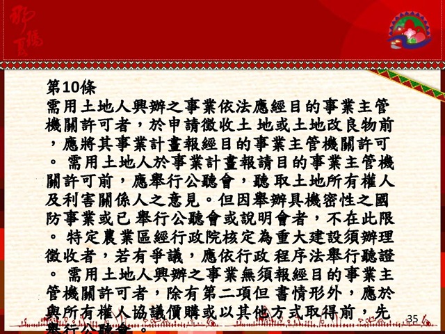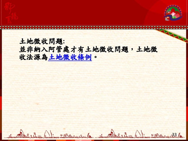 那以目前看來,像今天鬧得很兇的苗栗的大埔農地,政府要徵收、縣政府要徵收,縱使居民拿了好多好多的理由到台北去抗議;農民到農地裡面去哭喊抗議,去為他們自己的房子抗議,但是今天仍然連房子都拆了,因為政府說它是依法徵收,按照《土地徵收法》它就是有權力作徵收,我想這個部分也是不容去忽略的,是不是請我們行政單位在說完了百百種的好處之後,真正能夠把對我們的生活、對我們的土地使用、對我們將來的子子孫孫要在那瑪夏這個地方活下去,會有什麼真正的影響?(區公所)能夠很誠實地、很誠懇地拿出來跟大家作討論,讓我們有更充足的考慮來決定是不要加入阿管處。」