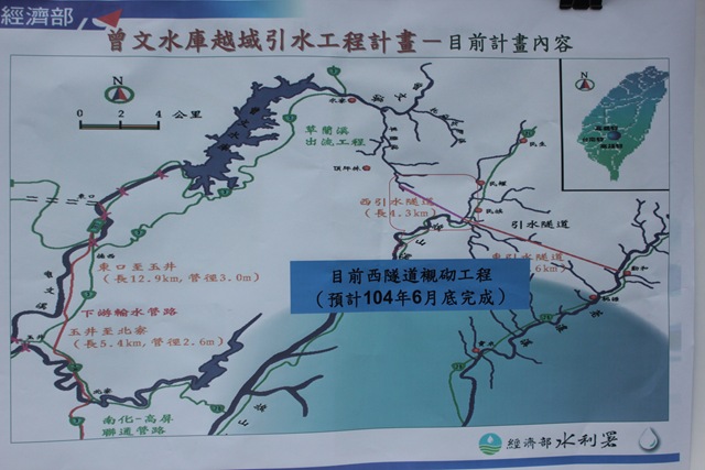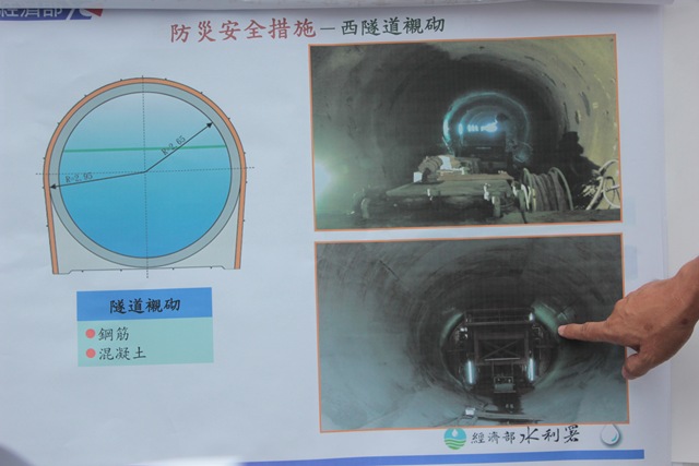 新工處承辦人員在會前向記者說明:「目前西引水隧道襯砌工程尚未完成,山壁尚會崩落,假如襯砌工程完成,就可以通水了;屆時要看南水局有沒有要通水,或願不願意提供行車」。(相關報導請參考:曾文越域引水襯砌工程通過環評,仍為「引水」做準備)