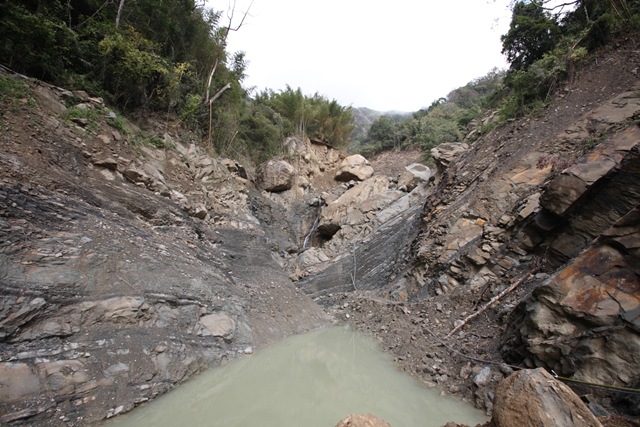 衛星導航重複唱著「重新規劃路線」的Rap,我與愛車底盤則一路上哀嚎唱和著。終於,導航如大夢初醒般地規劃好路線,提示我在前方50公尺處右轉接往里佳產業道路;「真要命」,我心想,前方是一片泥濘與碎石組成的臨時便道,右方則是落差達50公尺的深谷,由達邦往里佳的道路雖已搶通,但與過去的路況已大不相同。
