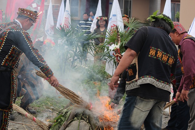 由於這天是日本311震災一週年的日子,因此在感恩禮拜開始之前,與會的居民與來賓均先為日本默禱,隨後由部落長老、代表在立牌前點起狼煙,並說明在魯凱族與排灣族的傳統中,這是報信的儀式,而狼煙則是祖靈的天梯,除了告知祖靈之外,也代表部落將在此建立新生活。