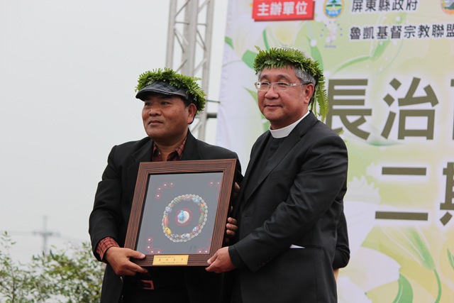 主持這場感恩禮拜的主持人是同為魯凱族的包勝雄,在流程進行之間,包勝雄提到,「魯凱族跟排灣族是住在斜坡的人,以前拿鋤頭只要彎這樣就好,耕作平地比較辛苦,因為拿鋤頭要彎得比較多,我們的同胞來到平地,希望大家可以適應新的生活,因為這是許許多多人的期待和祝福。」