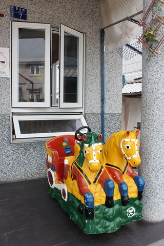 往佳暮部落居住的區塊走,過去本網報導過的Lubula Ina的家中依然堆放了許多自己的手工藝作品(詳閱:長治百合系列(3)Lubula:我們一定要想其他辦法賺錢、Lubula Ina 的好手藝,需要大家的支持),現在她邊開雜貨店、邊作手工藝,家裡的樓梯間也堆滿了她的成品,看起來情況和過去沒有什麼改變,她指著家門前的電動搖搖馬,「這是最近人家給她的。」
