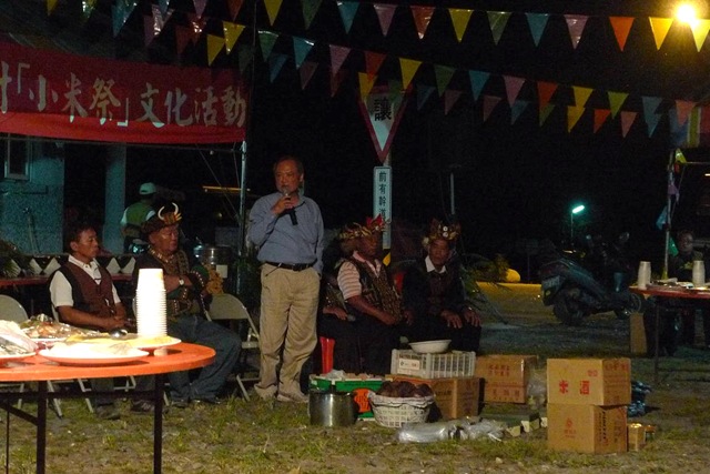 霧台鄉長顏金成至吉露村參與小米祭典,勉勵族人舉辦部落祭典的用心與說明部落公共設施預完工進度。’