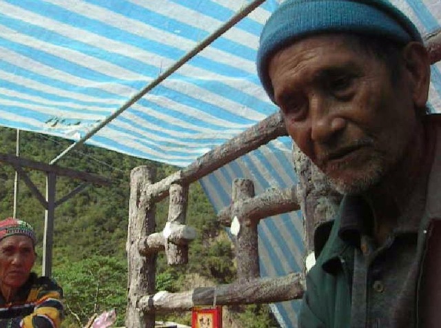 「他應該是從這裡掉下去的」,阿其巴部落的老人家Tama Dahu遙指眼底一大片險峭河谷描述著:「在那裡有看到他的帽子……下到河那邊,(發現他的)東西、還有一百塊,都在那裡…..」