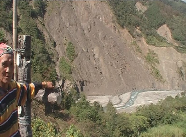 阿其巴部落的對外「通路」–「水大的時候,走山壁,水小的時候,可以走河床。」死者另一位哥哥Dahu。因為有心臟疾病,為了就醫,只能選擇申請山下的永久屋。Dahu認為弟弟是從身後那塊岩壁上墜落的。