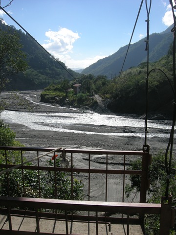 桃源鄉居民為了到阿其巴平台務農搭設的流籠。鐵索都鬆動生鏽。對面的阿其巴部落與南橫公路不過一水之隔,但災後一年仍無路可通。