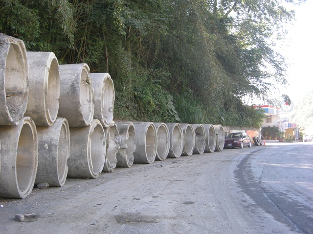堆置在拉芙蘭村的涵管。涵管為公路局所有,直到12/1村民陳情,鄉公所才答應與公路局協調先調去做阿其巴便道。而拉芙蘭居民表示,涵管從6月份就已經堆置在此。