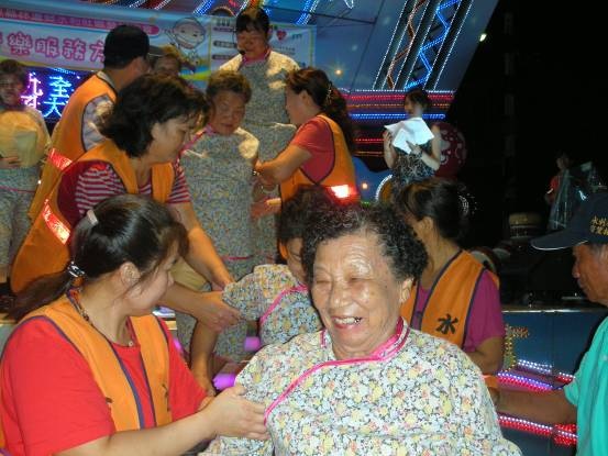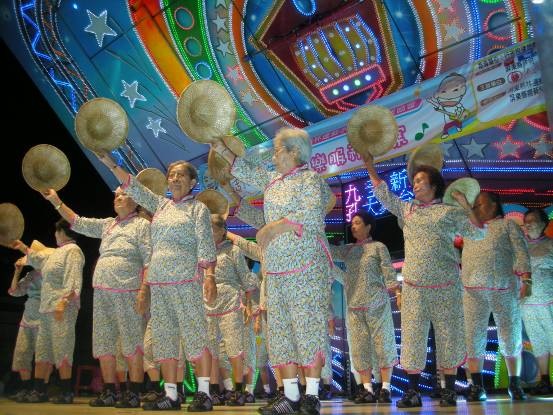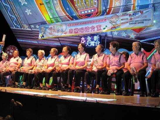 「哇!足緊張,吃到83歲才表演跳舞給人看,足趣味!」83歲的洪王菊蕋阿嬤說,台下阿嬤們的兒子媳婦全都到場幫阿嬤加油。阿嬤們手足舞蹈的努力表現著。「阿嬤加油!」台下加油聲四處響起,掌聲不斷,閃光燈此起彼落,阿嬤們跳的更起勁了。