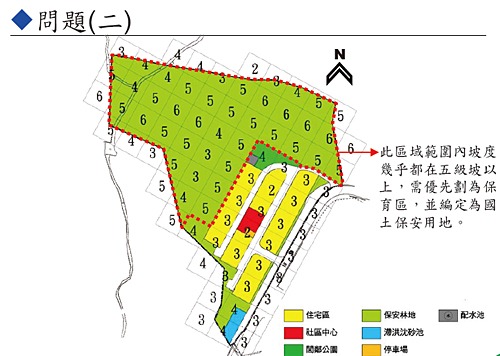 9地號鑽探結果顯示,最深得要鑽到40米才有岩盤,屬於不穩定地層…基地範圍內坡度過大,西側偏坡還有潛性順向坡,隨時都有崩塌危險…經規劃結果顯示,公設比不符合區域計畫法規定、5級坡比例過高、基地透水面積不足…就算安全也不能開發…」山美9地號審查結果說明會上,專家學者所說的每句話,都像是要敲碎山美受災戶的期望一樣。