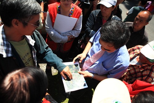 (圖說:頂湖基地現勘當日,除鄒族災民積極參與外,當地漢人與鄉代表主席,亦到場主張保障漢人權益,呼籲政府不要製造「間接災民」。)