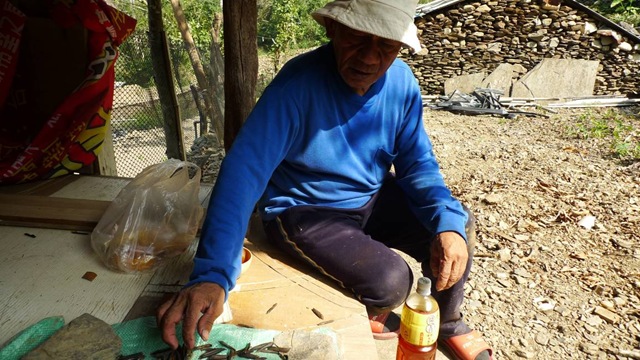 住在神山的盧光明回想起以前小時候耕作的記憶說,以前都是用走的到田裡。他說,「以前沒有感覺到很累,因為習慣了。」以前是習慣走路啊,現在要走路回霧台村可能沒辦法,會抽筋啊!他笑著說。