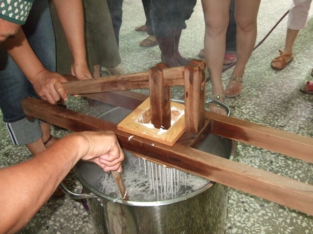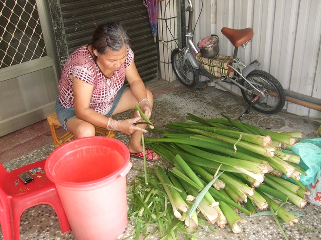 除了幫助農民恢復正常耕作、生活外,江嘉萍也在日常生活中尋找新點子。芋頭和稻米是新豐村和泰山村的傳統作物,所以日前也研發了芋頭冰粽、芋頭米苔目等等新產品,她最近還發現其實本來會被丟棄的芋頭梗在古早的時候會被老人家拿來醃製成「芋酸」(客語),便想號召社區的人一起用芋頭梗做芋酸,傳承老一輩的智慧。