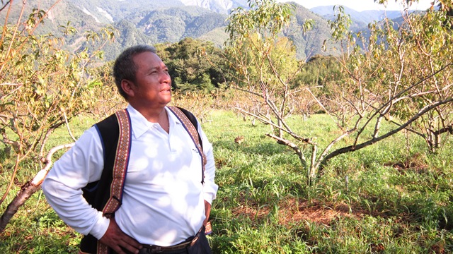 而無論災難發生、災難遠走,勤和平台上的土地,總有人隨著四時變化耕作,從生活場景到經濟來源,族人自有一套與土地的相處之道。這樣的生活方式,也體現在居住在勤和平台、以有機方式照顧水蜜桃園的Tama Ciang身上。