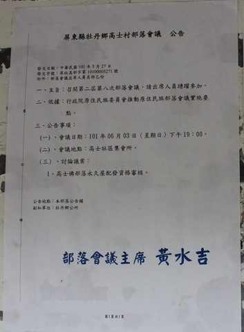 在6月3號最後一次的部落會議上,縣府原民處副處長蔡文進親自南下高士村列席。會議中提供25戶名單表格,讓在場村民勾選出22戶。尤慧蓁說:「我一看是這樣,我就知道我們不會在裡面了!」