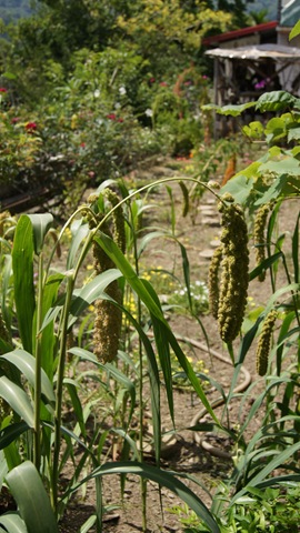 除了一般常見的加油設施外,高春花更在加油站後方佈置了一塊菜園與乘涼的亭子,「我這邊還有黑膠唱片,我自己搞浪漫!」高春花笑著對我說,許多遊客在加油的同時也會下車看看菜園裡的小米、紅藜、葡萄。採訪的這一天,一名遊客正巧走到菜園旁,高春花熱情地問遊客需要什麼協助…