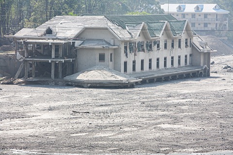 儘管寶來已有共識,要重振過去觀光榮景,但相關交通、行政資源能否配合,仍值得持續關切。圖為仍陷在土石堆中的新寶來飯店。攝影:鐘聖雄