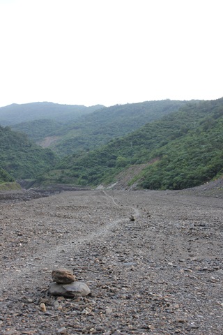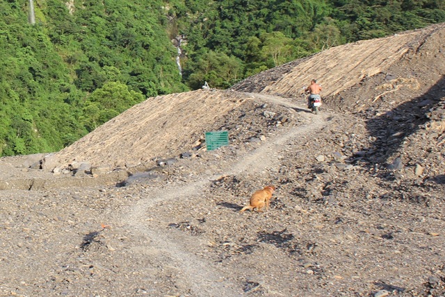 大水過後,往部落後山的河床路也完全改變。但有民眾很快以石頭標記出一條新路,供人辨識。一般族人都騎著打檔車,上山工作。