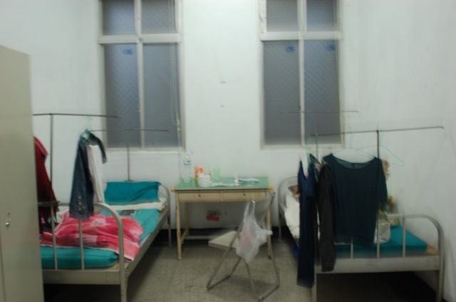 安置區的地上濕滑,老人家或行動不便者容易滑倒危險。唯一值得稱道的是,從族人入住的18日開始,衛生局就安排了高醫等公立醫療院所的醫師,從早上八點到晚上八點都有醫師護士輪值駐診,照顧這42人的需求,顯然醫療照顧方面比昨天以前僅僅依靠民間慈善機構慈濟仁醫會(8am-5pm)的牛稠埔安置中心來得到位。