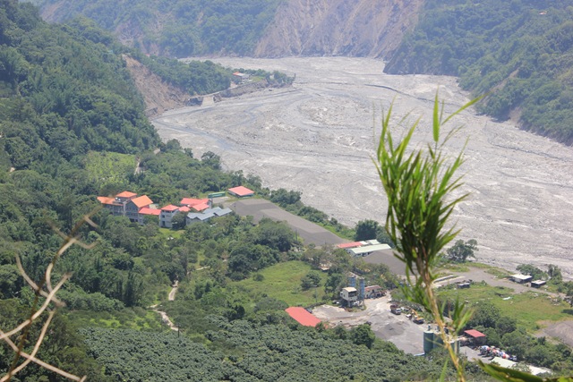 從勤和平台俯瞰,可見下方砂石場、紅屋頂聚集處是桃源國中,桃源國中12點鐘方向為勤和村一角,是正當水沖的前少年溪溫泉,據說因為已經到岩盤而沒有損傷,但是道路已經斷絕,導致桃源國中斷水斷電至今,學生只能暫時分隔山上山下暫借桃源國小與鳳山新光高中上課)