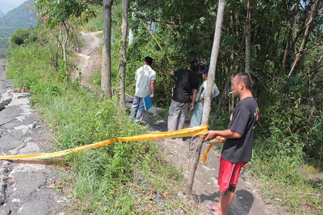 桃源國中老師等不及開路,攀爬破損到路邊坡步行進學校去拿畢業典禮所需物品 2012/06/26攝