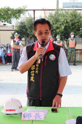 我們知道堤防太低,低了一公尺、60公分,那是不是我們先做一個緊急的方式就是說,把林邊溪的土先往堤防那邊推,推過來那個要增加高度,我的同學剛好是搞營造,他說太空包剛好是一公尺,那是不是把土推積過來的時候也堆一層的太空包,曹縣長有聽進去,就指示水利處趕快施作 。」