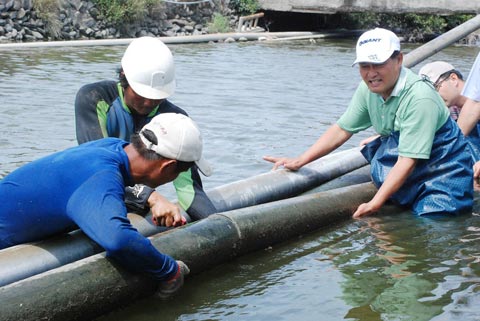 屏東縣養殖漁業發展協會20日於佳冬鄉舉辦災後重建祈福感恩晚會,感謝社會各界在去年八八水災時,對於養殖漁業救災及重建的協助。會中邀請各界代表一起點燃龍膽石斑魚造型魚燈,共同為養殖漁業祈福。