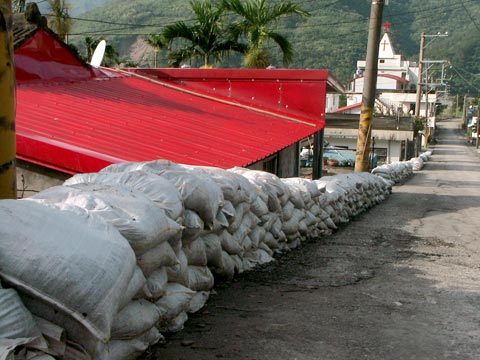 周德坤是八八風災受災戶,這次凡那比颱風又有土石流進家中,他表示,雖然部落都有堆沙包,不過功能有限,土石流發生時,不用一個小時,堆積的高度就會超過沙包,所以堆沙包高度一定要超過六十公分。