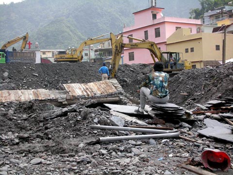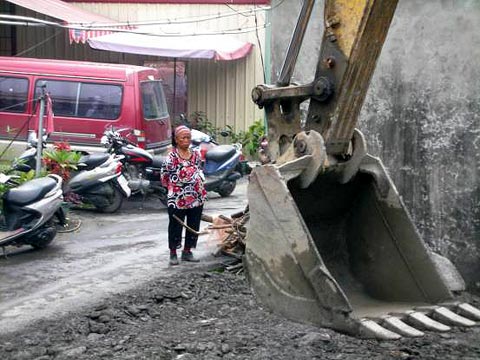 怪手逐漸挖出被土石掩埋約兩公尺深的房子,據的統計,共52戶遭到土石流掩埋,其中19戶全埋。凡那比災後第八天,滿地的泥濘,轟隆的怪手,清掃家園的村民、轉身的背影、無奈的面容。