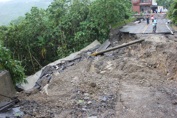 黃太太表示,離她家約五步距離的路面都被暴雨沖刷掏空,電線桿都掉進大坑洞裡,從莫拉克颱風後,這整座山都 有在慢慢移動的跡象,道路也有傾斜,她覺得這個區域不太安全,若政府有辦法幫忙,很想搬離 這裡。