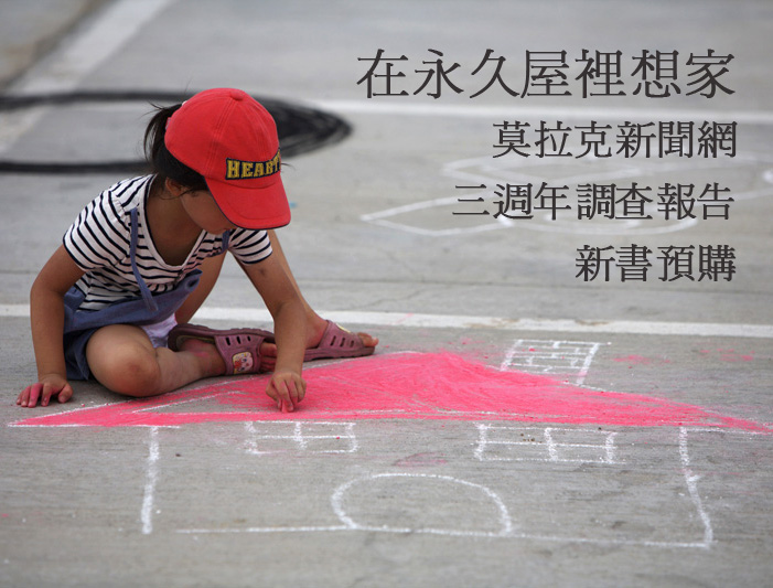 在莫拉克災後第四年的今天,《在永久屋裡想家》這本書終於出爐了!原先我們預估內文約15萬字,約298頁,但我們認為永久屋裡的重要政策、細節都必須呈現,因此付印時字數已經超過20萬字,頁數已經將近五百頁。對於我們實際出版與預計的時間的落差,我們深感抱歉,更感謝大家一路的支持與鼓勵與等待!