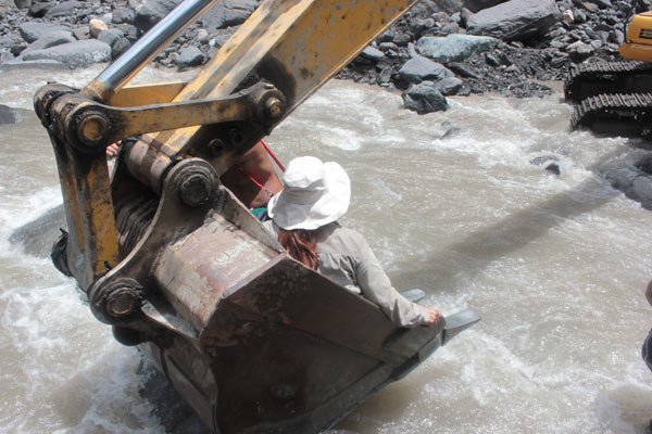 玉穗農路難通行:人當怪手搬石頭,走溪床險躲土石流