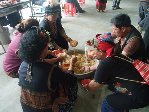 高低層疊的吟唱中,有人忍不住大聲號哭,不能自己;大多數的人平靜唱出古老的曲調,默默度過這得來不易的一刻。扮演主祭的尪姨、向頭在圓圈中央獨舞,時而高呼,時而以竹器盛裝的酒杯予族人輪飲,眾人舞步也從未停歇。