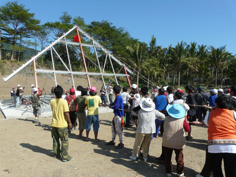 台東縣大鳥村中繼屋11月28日舉行立柱動工儀式。自救會頭目王中山表示,水災至今,大鳥居民經常會自問「我身在何方?我的家在哪裡? 」。因絕望而生的恐懼,因著中繼屋開工,終於心安,看到希望。